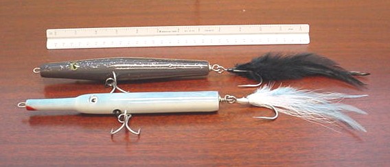 Top one if 7 1/2" plus tail and 2.5 ounces.