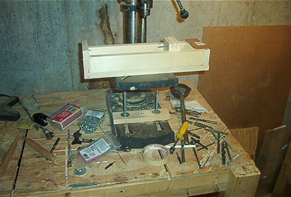 With this one setup I can drill all of my holes Weights, hooks, eyes and even the thru holes on short plugs. I've got to finish long thru holes by hand (its only a 10" press) , but I'm working on a jig for that too, Maybe tomorrow.