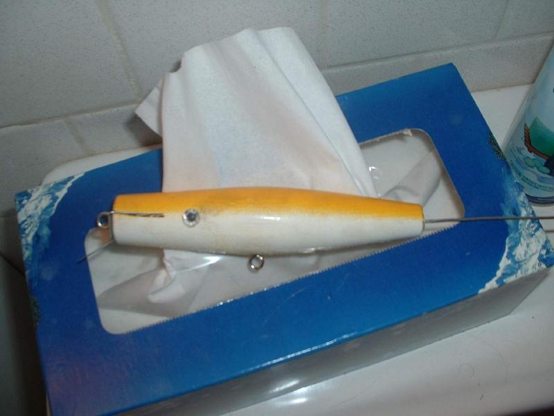 Actually, he took it to Rhody for the MDA tournament, and it is residing in his plug bag now. I didn't lose it, the guy I gave it to did, so it's up to him to go claim it. It a needlefish, after 2 months in the bay, it's a bubble fish  tiny bubbles under the e-tex, I guess