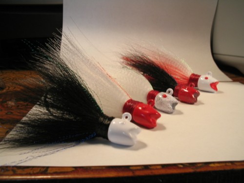 Red head with all white bucktail and just a few strands of red trailer on the bottom works real well. Perhaps it looks like a bleeding baitfish.