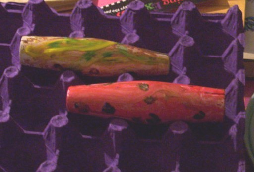 Also, my daughter painted some dannys I turned that I wasn't satisfied with. Looks like I'll have to finish these two after all!