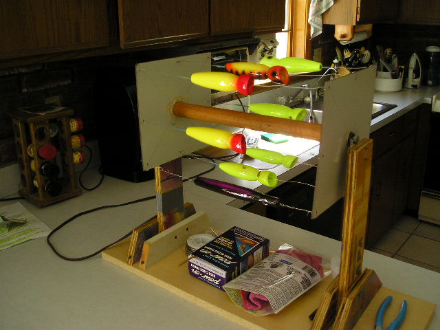 Nice the air brush is a cool thing looks like u got it goin on pretty quick. I like the poppers i made one like them off center cutty's I was actually tryin to make one of those old big rebel pop-R's.i messed up the epoxy but its a cool color an I'll fish it.it throughs ALOT of water.