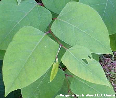 An invasive perennial that spread by rhizomes and seeds. Japanese knotweed can grow to a height of 13 feet, and has stems that resemble bamboo when mature. Japanese knotweed was introduced to the United States from Japan as an ornamental, and now occurs as a weed of riverbanks, landscapes, abandoned fields, or other moist areas.