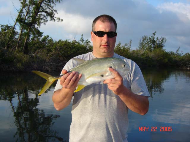 Had a shot at a Tarpon, Tod estimated it was 40-50#'s. I had the big fish on for a little while, what a fight, until he broke the leader on me. We saw several Tarpon rolling on the surface. Also had a good size Bull shark come up to the boat and grab my bait, no chance there on light tackle. Got a bunch of fish sight fishing the flats. We saw Reds, trout, snook, ladyfish, and Jacks. It was a totally different way of fishing, I like it a lot. Pretty cool having Dolphins and Mantatees swimming around the boat while we were fishing. Here's a few pics.