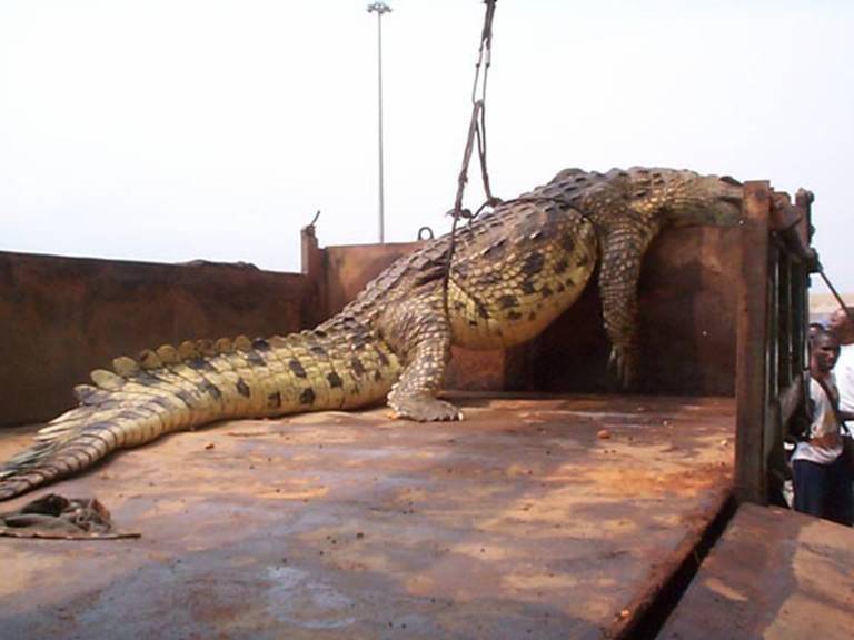 >This crocodile was found in New Orleans swimming down the street. 21 FT long, 4,500 lbs, around 80