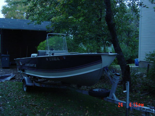 16' Starcraft CC 1988 Hull w/1994 48hp Johnson and 7.5hp Mercury kicker. 16 gallon onboard fuel tank. All is in excellent condition. Motors were proffessionally maintained. Floor and vinyl covering was replaced approx 5yrs ago along with the steering and throttle cables. Upolstry has been redone. Accessories include Apelco fishfinder, Nonmapping GPS, VHF, anchor, some motor parts, spare prop, rod holders in gunwales and transome. Trailer is 2005 Karavan galvanized roller style w/spare tire. I am asking 4900 for the whole package. This boat is ready to fish, just drop her in the water. Any questions just ask..