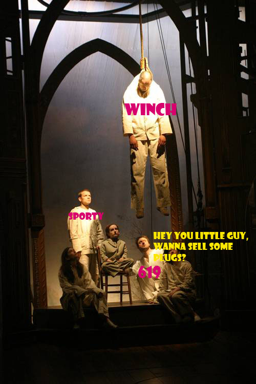 It's a metaphor, a nonreal person, a parody on life. Don't you see those made for TV movies where they take today's headline and make a movie but since they don't want to pay the people that the sh@t happened to they post a declarations or sumthin saying the characters were made up and do not represent anyone in practicular so they don't have to pay for the story rights? Well It's kind of the same thing as no where on any site that we know of is there any proof of a thread where winch was left hanging on the top of any certain forum. So I guess its ummmm a made up story.