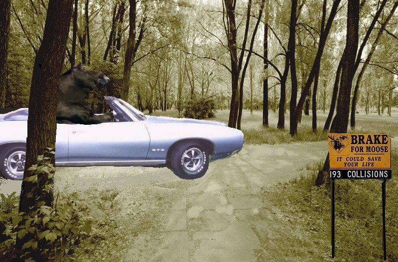 Went sweetwater fishing with my brother-in-law way up in Colebrook, New Hampshire at the first Conneticut Lake and stayed at some fishing camp about ten miles from Canada. A short ways north from the camps access road to Canada there was a sign that said moose crossing. What the sign should have said was "occasional car comes this way", because thier were more moose than cars. Stopped to take pictures one day and the lithium battery went dead on my 35 mm Canon old timey film camera. Used the manual exposure and walked to the front of my f-250 and came within 5 to 8 feet of the moose and took shot. Silly me getting close, but they were all eating the fresh grass on the roads edge. Besides I think the moose was enamored with my f-250. Wouldn't do that again. Older, wiser. One day though coming bacik from twenty miles in the woods fishing for what turned out to be little five inch trout I counted 17 moose along the edge of the road in a one mile stretch eating the spring grass. As an aside I actually saw a guy catch and keep three five in trout. What a shame. Oh ya my one five inch catch and released trout won me the hot rod for the week.