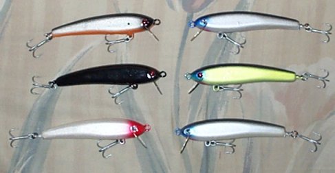 Hand carves. Just a tad under 1 oz. Thru-wired and completely sealed. Tight wiggle to them. Float at rest and dig a few feet on retrieve.