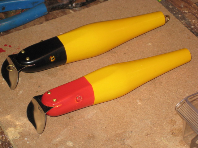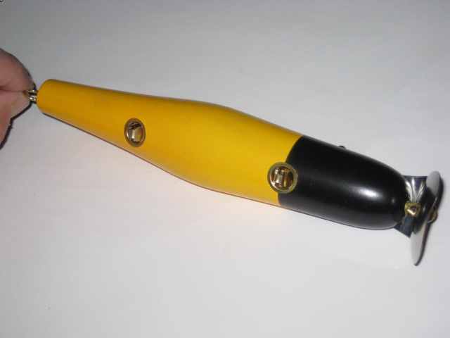 So I consulted the Creek Chub Collectors guide and found a really cool color combo in the CCBco dip style of painting. Nothing fancy but this is the result. I am happy with it.