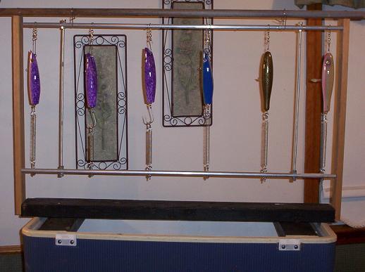 so far I've tried the single plug flip,I built an epoxy ferris wheel and the motorized inline heated epoxy box .. To make a long story short flipping produced the best results. When I spun the plugs inline the weighted plugs spun unevenly and the epoxy sagged.. The ferris wheel was a mother to put the epoxy on the plugs, always had voids.. The single flip was best but my fat dead fingers would drop the wet plugs on the dirty floor. With all the epoxy talk I thought I'd share the latest group flip proto with the barrel swivels I can spin the plugs and apply the epoxy much better.. Wearing a glove on one hand while moving the plugs has stopped my epoxy crawl..Working on the kitchen table and pre heating to room temperature plugs and epoxy has really cleaned up my finish . I boost the heat to 74 degrees to epoxy ... free plugs,,, right ... This is a work in progress .. I acually unclip the rack and flip it and clip it back in the wooden frame... If the rack was attached to wood frame and I could just spin it would be my next modification .. I have a nice wife that doesn't even blink when I do all this stuff .. One other mod would be to put washers or wrap tin foil around barrel swivels ..Had epoxy run in 2 of them and had to swap them out .. after a number of plugs though ..