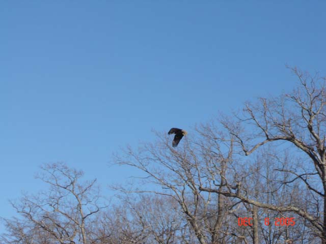 I see a Bald Eagle (no, not my brother or me) every once in a while at Coast Guard in Truro. I also sometimes see one fishing on the Ct river in western MA during the Spring. They're cool. When I was little kid, I climbed a huge pine and found an aerie. I remember I could stand on it. That is a mazing to me.