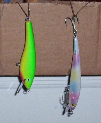 I started out carving bomber copies, then fought with a metal lathe to spin classic style plugs, now I'm back to carving. I really like the look and action of the turned plugs, but I have to work on my setup some before I turn more. I was getting 1 good plug out of 5 or so peices of wood and that's too much waste for my budget. Anyways, I tried this shape that I got off a dutch(?) pike site. It's 5" long and white pine. I'm only doing one at a time so I can play with the weighting and stuff until I get what I'm after. Right off the bat it's pretty good. I didn't weight this one at all, but with the hooks and splits off an a-salt it snakes along nice and tight with a little roll. It floats too high though, so the next one will have a slug between the lip and the belly hook. For what it's worth, using a knife and carving this out was very enjoyable.