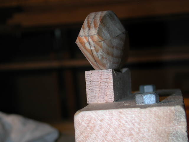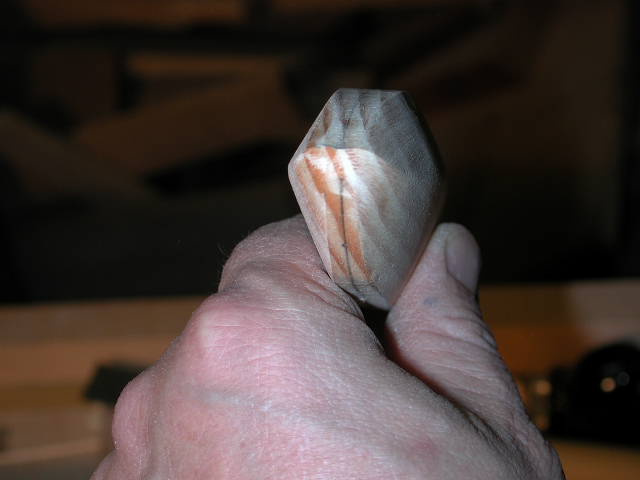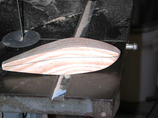 Clean up on a belt sander, and draw centerlines top and bottom and lay out parallell lines each side of it to mark the desired top and bottom widths..............sorry lost that picture but I think it is self-explanatory. Next I make a side pattern determining the shape that separates the top and bottom half of the plug and draw it on each side. This will act as a guide for how far up the side of the plug you want its max width.
