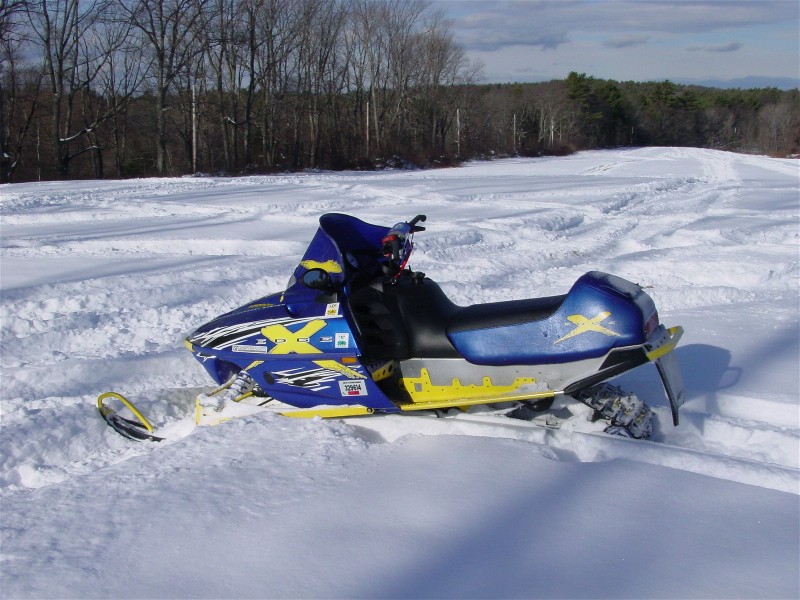 There's a place in Bethel ME near Sunday River that rents sleds and is on the trails, not really enough snow to ride up there yet though. Its called Sun Valley sports. Check the Bethel ME home page. Nice area.