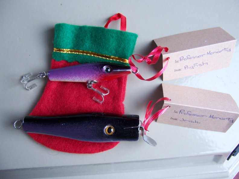 Thank you Bigfish. Got my box today. Very nice! A Professor needle/sandeel tin and a little guy, spook I think, from the elf. Awesome work!! I guess I was a good boy this year! Thanks for helping to make this a great holiday, even us tardy ones!