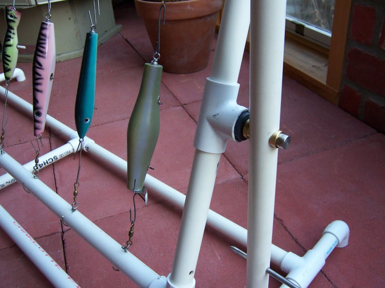 U king of the flippers,, yours is way better.. no more dropping sticky plugs on the floor .. I've been wrapping a little piece of foil around barrel swivels to protect them from epoxy . Had a couple freeze up after numerous plugs ..