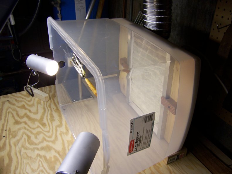 1 Rubbermaid "Under the Bed" storage container. I only recommend using Rubbermaid products for any application that might involve drilling or cutting holes. The other brands all seem to have a tendency to split while you're drilling them.
