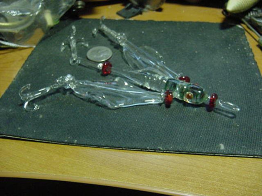 wow- pretty cool stuff. From the looks of it those were made by a lampworker on a torch. Theres no way i could make those delicate hooks the way i blow glass...