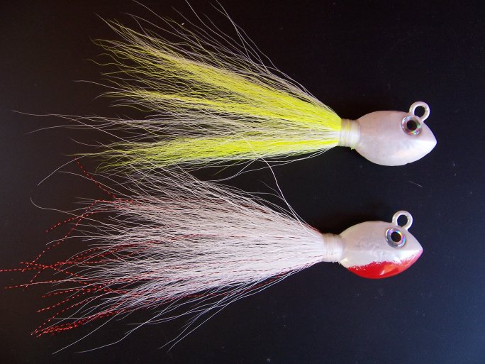 Not an easy task to find swinging hook bucktails in the tackle shops around here, if you want them, gotta make them yourself, or in my case, steal some of my dad's hand poured/tied