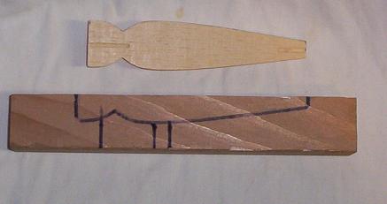 I marked it with a big fat sharpie so you could see it .. Go cut that out on the bandsaw... notice lines ... i marked other things like belly hole ,, weight hole ,, slope ...will use that later ...