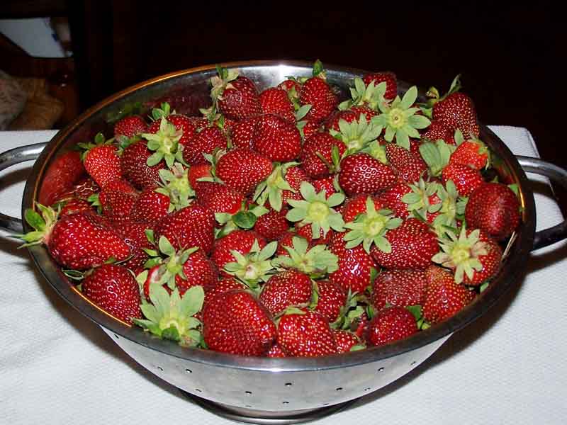 Sitting here at lunch eating chilled strawberries from the garden, first of the season. Oh man, are they good!