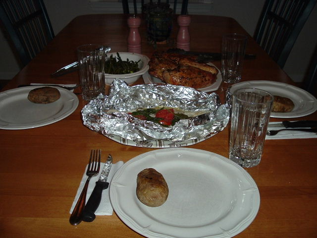 also grilled chicken, asparagus and russets