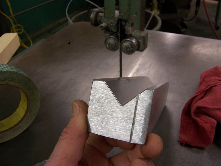 One more look at the v block. Very simple stuff. You can see where I pushed the block into the saw so to support the stock thru the end of the cut. Very safe and simple.