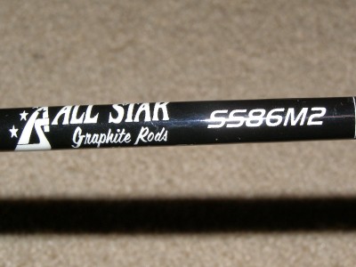 8'6 (2 piece) rated for an 1 1/4 ounce. Fast Action. Fuji Guides. Handle is 20" from the bottom of the reel seat.