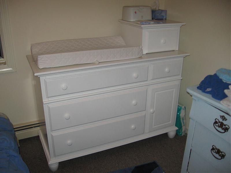 Also, a changing table/dresser combo that can convert to a plain dresser and a side table. In very good condition. (the drawer on the top right is the part that can convert to a side table)