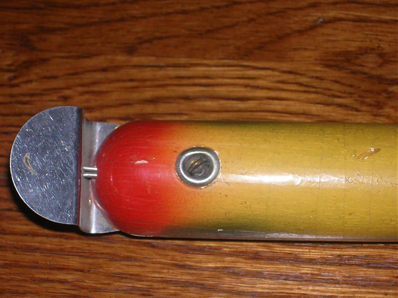 Here is a picture of some bluestreaks that I have. The taper on the tail end of that one is a little different. The lip on the bluestreaks is out a little further from the wood too. Is that one an Atom maybe? The taper on that one looks like the atoms I have, but who knows. Nice plug. I like the color. The paint job does have a little blue streak pattern look to it.