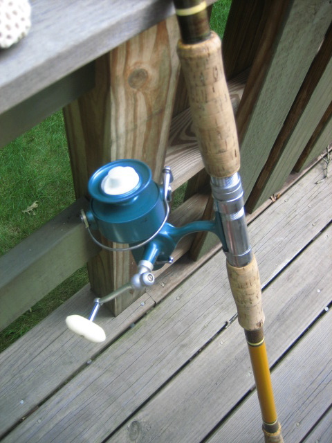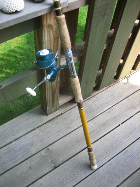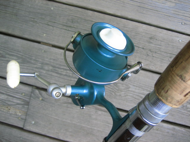 In real nice condition... both rod and reel. The rod is 11' 4"... honey Lamiglas. Wrapped at/by Murat.