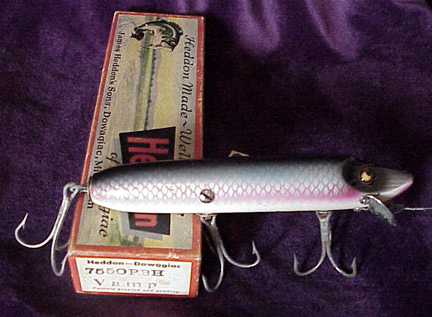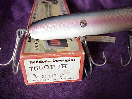 I'm glad you all enjoyed the pictures of the So-Co.I got another lure.It's a mint Heddon Giant Vamp in Blue Herring.It's in the original box too.Value?