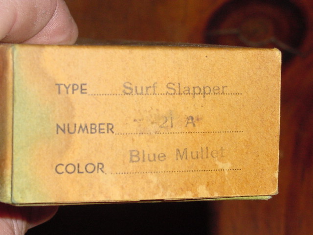 Eben........That Flaptail { Bernie Calitri } is the correct bait for the box.......Also that Pt. Jude { Surf Slapper } is the correct bait for the box, "Very Nice Combo".........Calitri was a well known striped bass fishermen in the 1940's, as was Jerry Sylvester, Ray Tucker, etc....as far as I know Bernie endorsed Striper-Experts { early Pt. Jude } and Pt. Jude Lures as a field tester. Don't take this as gospel... But, I also believe he may have worked for Pt. Jude manufacturing and painting lures. He then left at some point and then started Cal-Kay................
