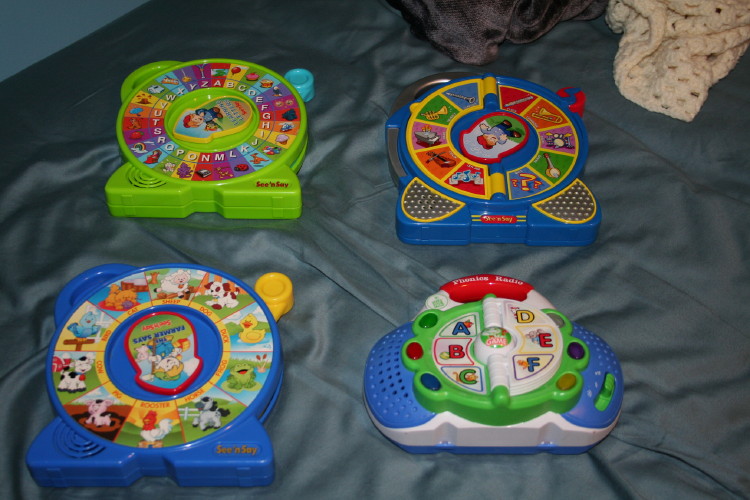 Some things from cleaning out the house, all work and are in good shape. 3 see and say and one leap frog. Good for 1-3yr old