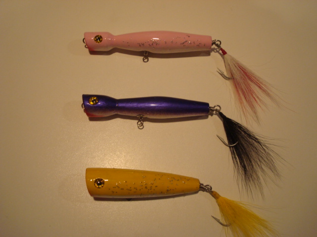 I have to admit, I've become addicted to plug building. Got my first few done last week and figured it's time to see what everyone thinks. Went with poppers, figured there's not much to them. Let my kids pick the colors. Thanks to all for all the info on this site.