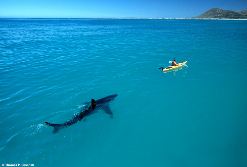 It's behind you: Great White stalks ocean canoeist