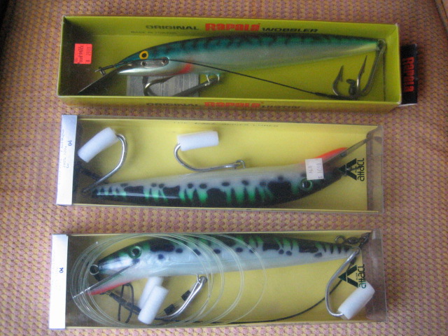 One is a 12" long Rapala 26 SM Mag and the other two are YO-ZURI L-Jack 240mm lures. All have wire leaders attached. I have no clue what they are worth. They look new. How about $40 plus shipping.... or??Click image for larger version