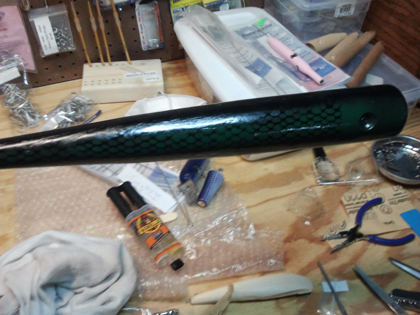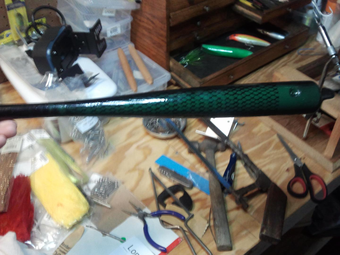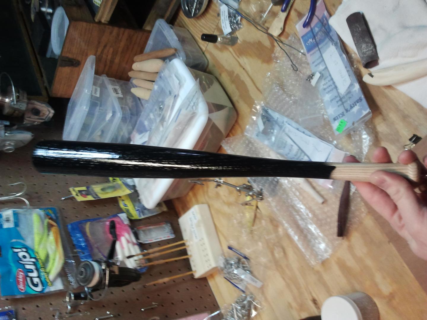 So my company had a baseball themed sales award night not that long ago and one of the prizes they gave out were small Louieville Slugger bats with the person's name on it and what their award was. Well, one of the salesmen didn't want his so he gave it to me. I thought, this is perfect for a fish bat. So away I went to customize it.