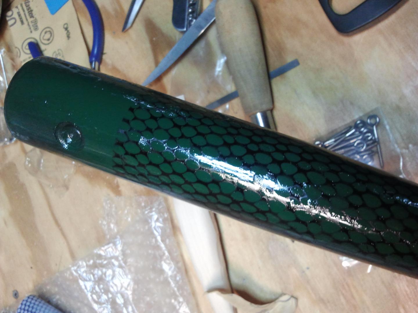 then a little net scale treatment, and a coat of clear. Now just waiting for the eyes I ordered and then epoxy.