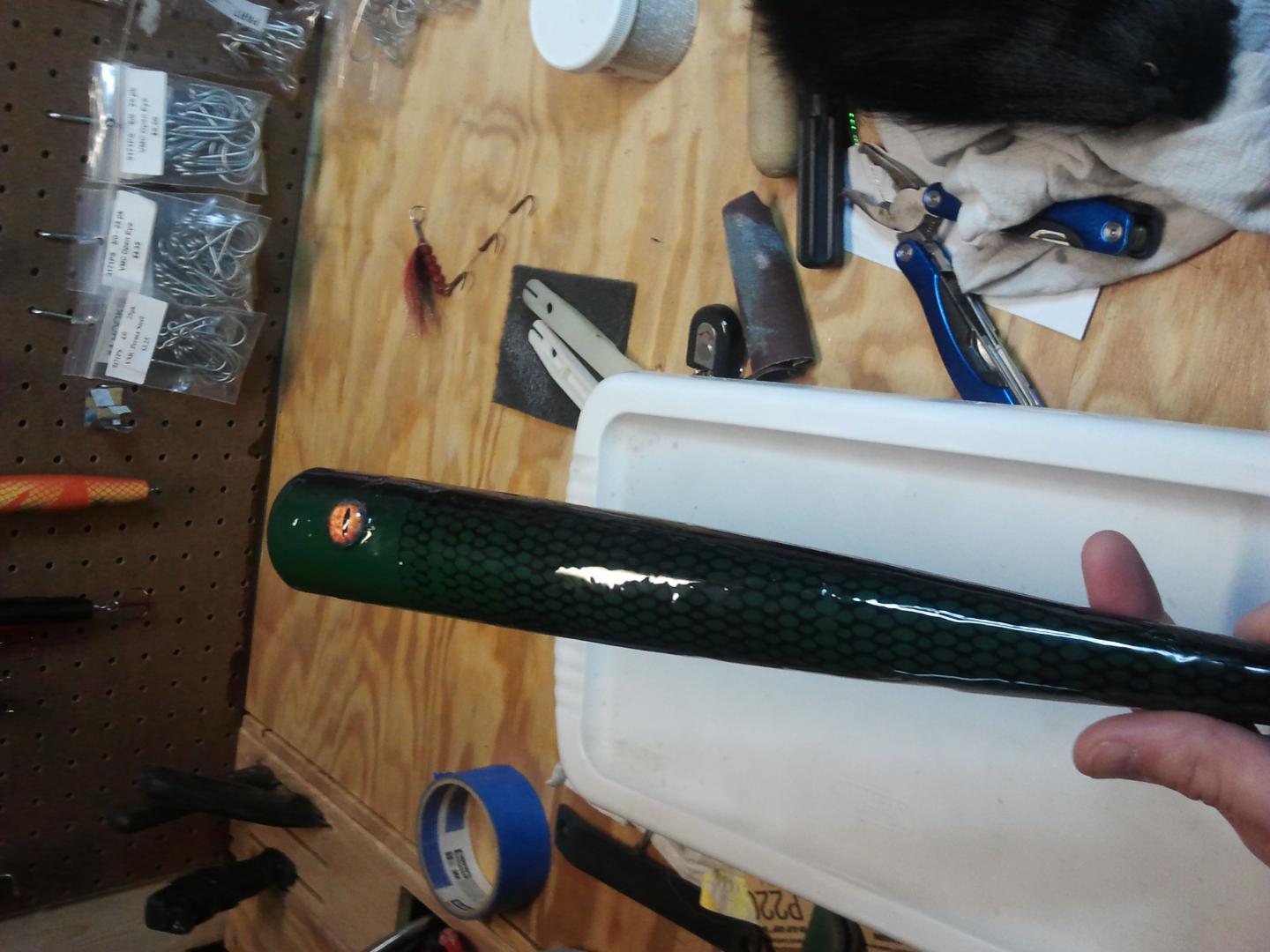 Your going to spook all the fish with That....  Its à Cool concept but i would've cut the tail off alittle and paint the Bottom 1/2 of the plug white .....