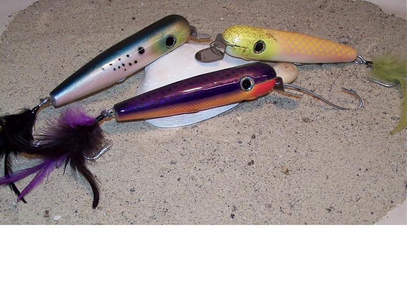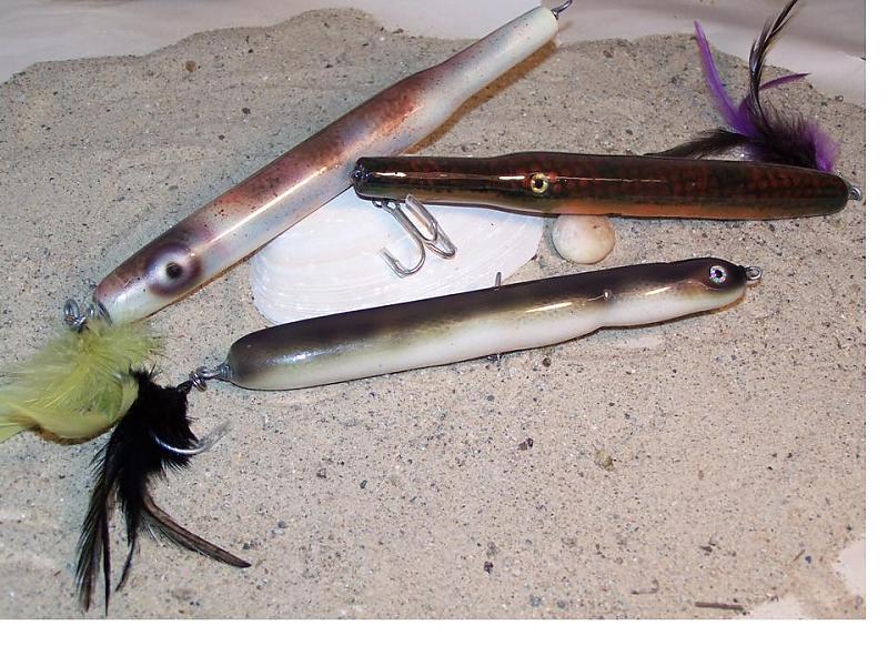 got up early to start the corned beef...hope it's not raining for the parade, I made a lobster needle that I felt much better about after going to the fish market Friday and examining the lobby tank with my daughter..to go with my squid and eel, these are big.. 9"... and had some fun with these others, I actually thought that I'd ruined the finish on the pogy imitation but in the end it gave a wild metallic look to the body somehow after a second coat? go figure... ...Happy St. Paddy's Day to All...