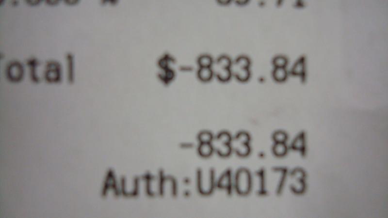 Returned some stuff to their store and didn't have the receipt so I got store credit. On the card is $833.84