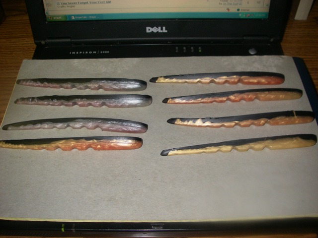 Small Lot...Includes 8 six inch jerk baits in the black back/gold or pink pearl body. Small but tough and thick enough to fit on a heavy duty canal jig head. Price is $5 plus $3 for reg mail or you can pay more for faster shipping.
