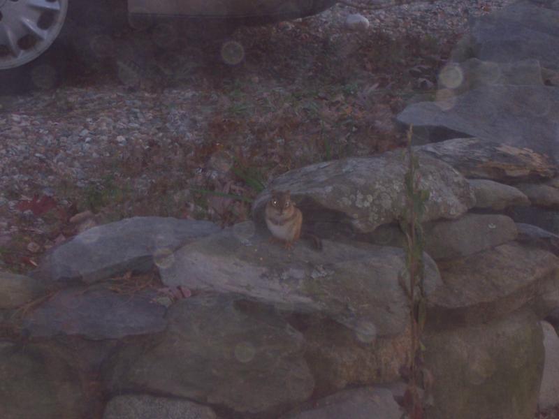 That cat wants out bad to kill that little bugger. For the last week he just sits there and eats acorns right in front of her. In the second picture you can see him in front of the tire on my sh%^tbox, below the yellow directional light, on the stone wall. I think he is well aware the cats eyeing him. Funny thing about that cat. She just showed up in the yard last weekend after being written off as coyote food. She was gone for 6 months and then just shows up no worse for wear.