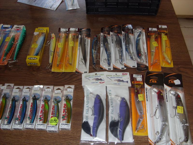 Loads of squid jigs, sluggos, spro jigs, etc…