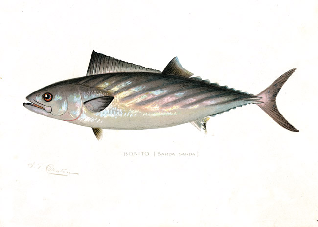 This is an ultra-clean original from the NY Fisheries, Game and Forest Commission Report - they were hard-cover volumes with these chromolithographs tipped (glued) into the spine - I've forgotten which year volume the bonito was in, but the print is over 100 years old and in perfect condition.