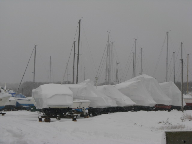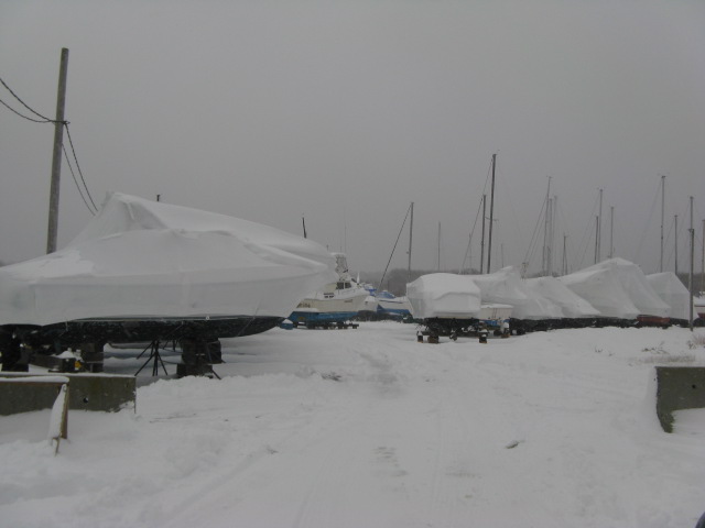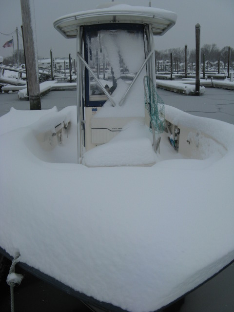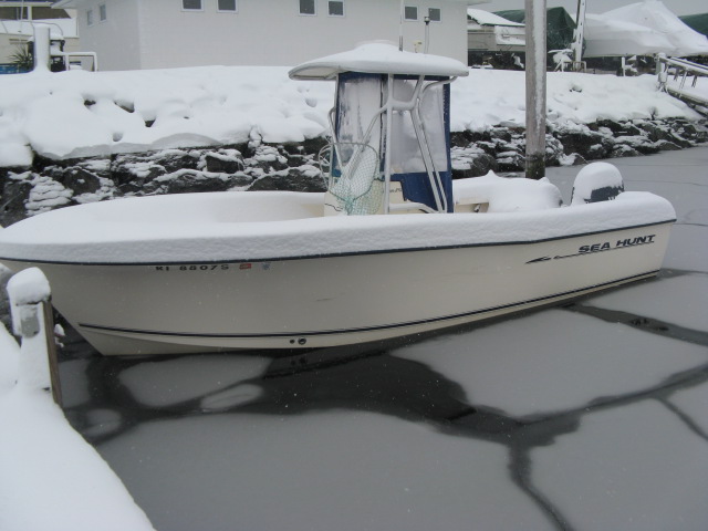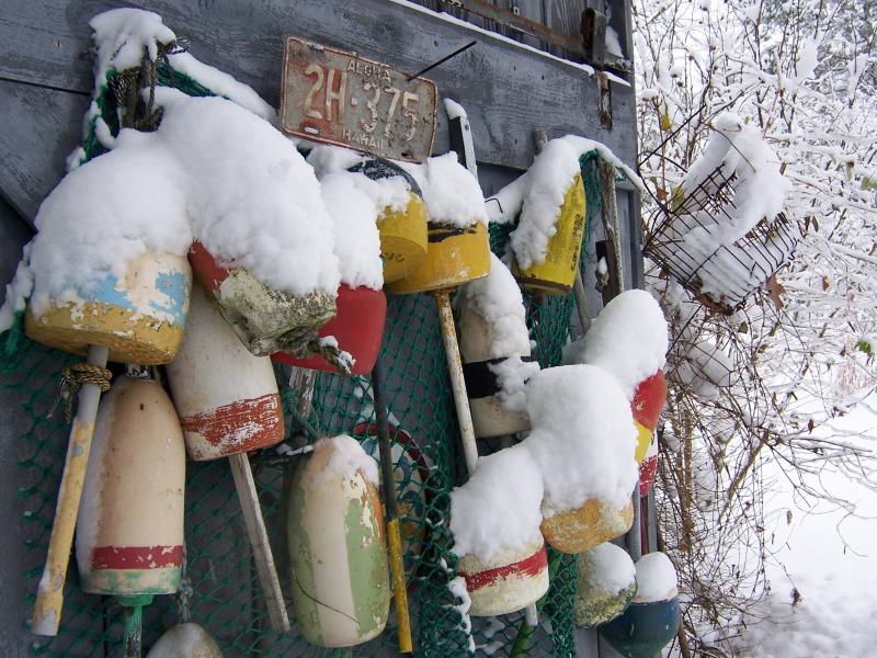 Oh..the Irony, of a Hawaii license plate, covered in snow, tucked amongst those buoys...