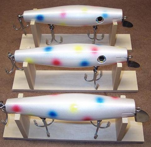 3. you don't do little dots, but multi color the whole plug (blotch if you will) the white pearl over that . Larry's jointed above looks like a good example of that style ..