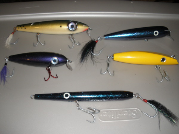 (1) RM Smith 3 oz Bunker (1) RM Smith 2 oz Blurple, (1) Salty's 2.5 oz Needle (1) Salty's 2.5 oz A40, (1) Tattoo 3 oz Yellow darter.